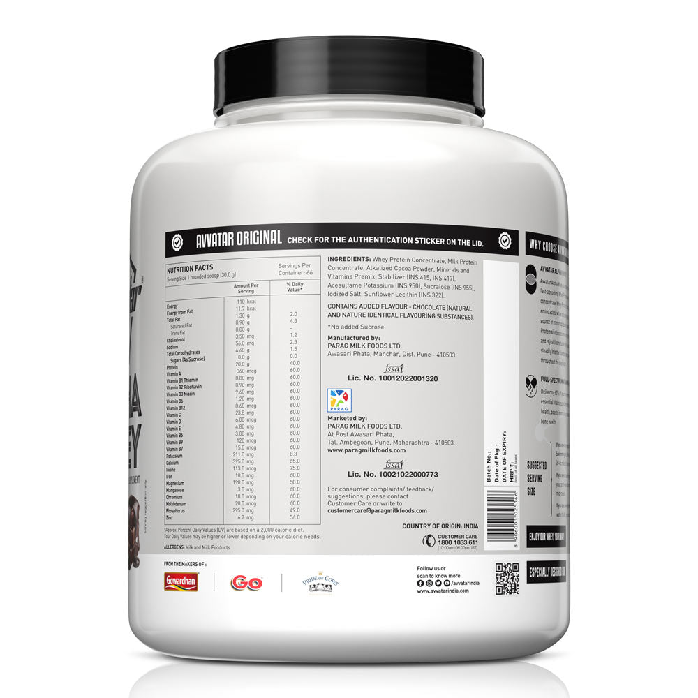 Experience the power of Avvatar Alpha Whey Protein, delivering a robust 20 grams of protein per scoop.